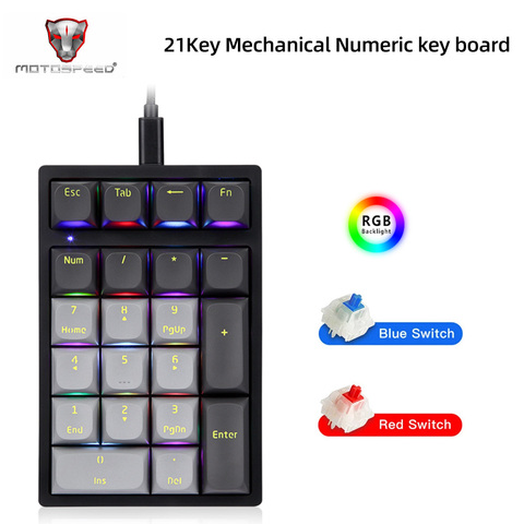 Motospeed K23 Mechanisch Numeriek Toetsenbord Bedraad 21 Toetsen Mini Numpad Led Backlight Toetsenbord Voor Kassier Osu Gamer Outemu Switch